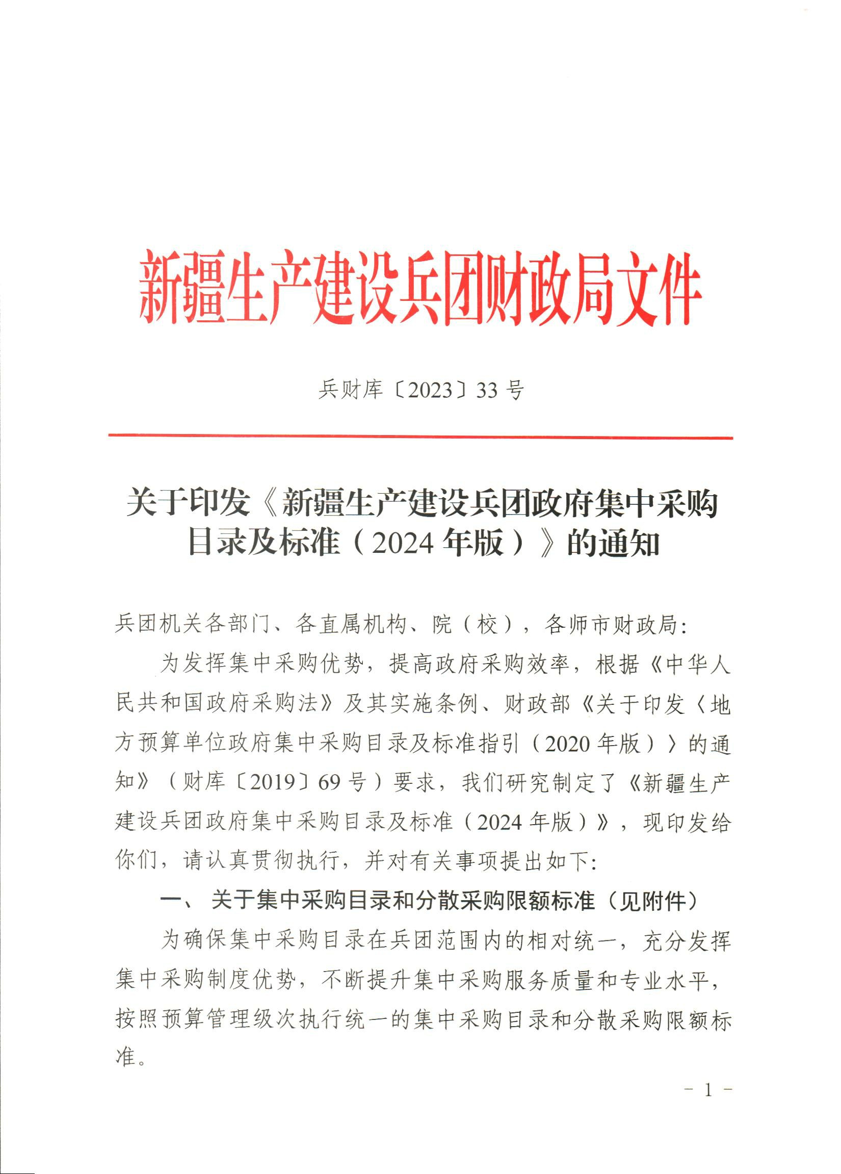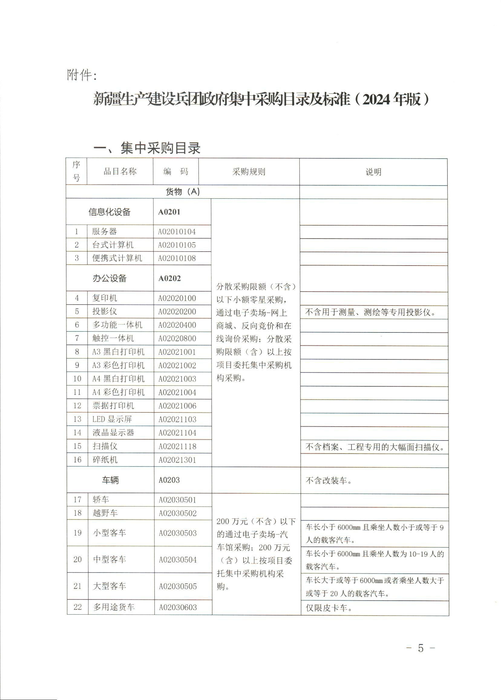 新疆生產(chǎn)建設(shè)兵團(tuán)政府集中采購(gòu)目錄及標(biāo)準(zhǔn)(2024版)