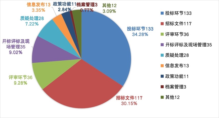 投訴處理結果公告324則,占74.65%。其中,投訴成立41,部分成立93;駁回183,部分駁回88。因投訴事項缺乏事實依據被駁回251;因投訴不符合法定受理條件、投訴無效及部分無效70;因其他原因不再審查7;投訴成立但不影響結果2(注:部分內容有交叉)。
