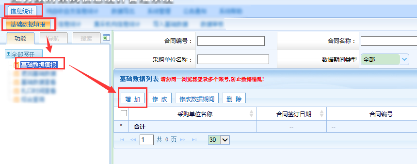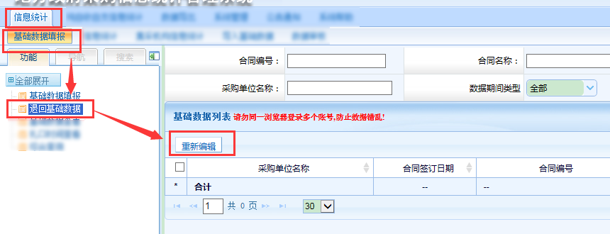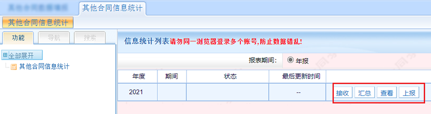 第四步,下級單位上報數據后,監管單位在其他合同信息統計頁面接受匯總報表。