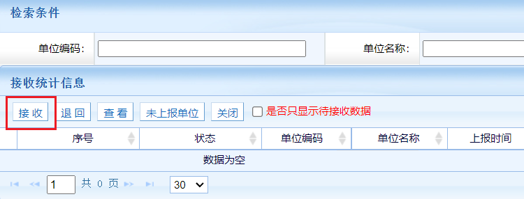 點擊接收按鈕,系統彈出如下接收頁面,選擇待接收數據,點擊接收。