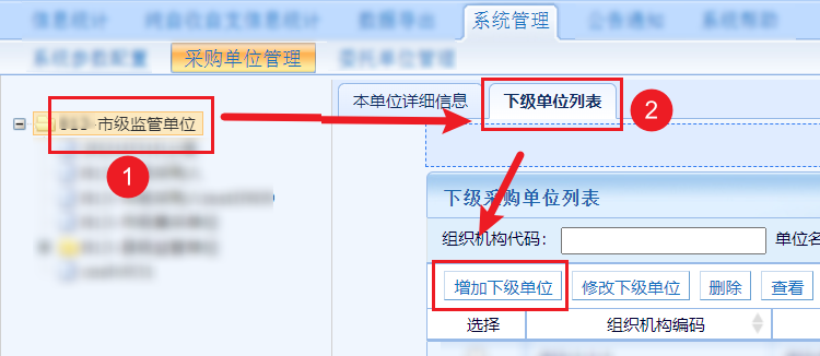 系統沒有專門創建賬號的功能,系統中采購單位和賬號是綁定的,每家下級單位都只有一個賬號并且賬號也無法遷移,默認賬號就是單位的組織機構代碼。