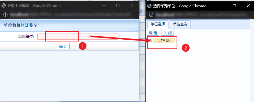 然后,在彈出的采購單位選擇頁面,為下級單位選擇新的上級。